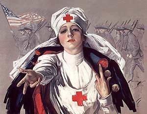 | Credits: American Red Cross Posters courtesy of the National Archives, Still Picture Branch - http://www.nara.gov/ "While someone gives his life - what are you giving/ - think a minute. All of the Red Cross War Fund goes for War Relief." Control Number NWDNS-4-P-217. Coverage Dates ca.1917-ca.1919. Creating organization was the United States Food Administration. Headquarters. Education Division. "Red Cross Nurse." Control Number NWDNS-4-P-219. Coverage Dates ca.1917-ca.1919. Creating organization was the United States Food Administration. Headquarters. Education Division. "Give" (Red Cross) by Kauffer McKnight. Control Number NWDNS-44-PA-873. Coverage Dates 1941-1945. Creating organization was the Office of Government Reports. United States Information Service. Division of Public Inquiry. Bureau of Special Services, OWI. "What Can You Do? Join Our Red Cross." Control Number NWDNS-44-PA-2395. Coverage Dates 1941-1945. Creating organization was the Office of Government Reports. United States Information Service. Division of Public Inquiry. Bureau of Special Services, OWI. |